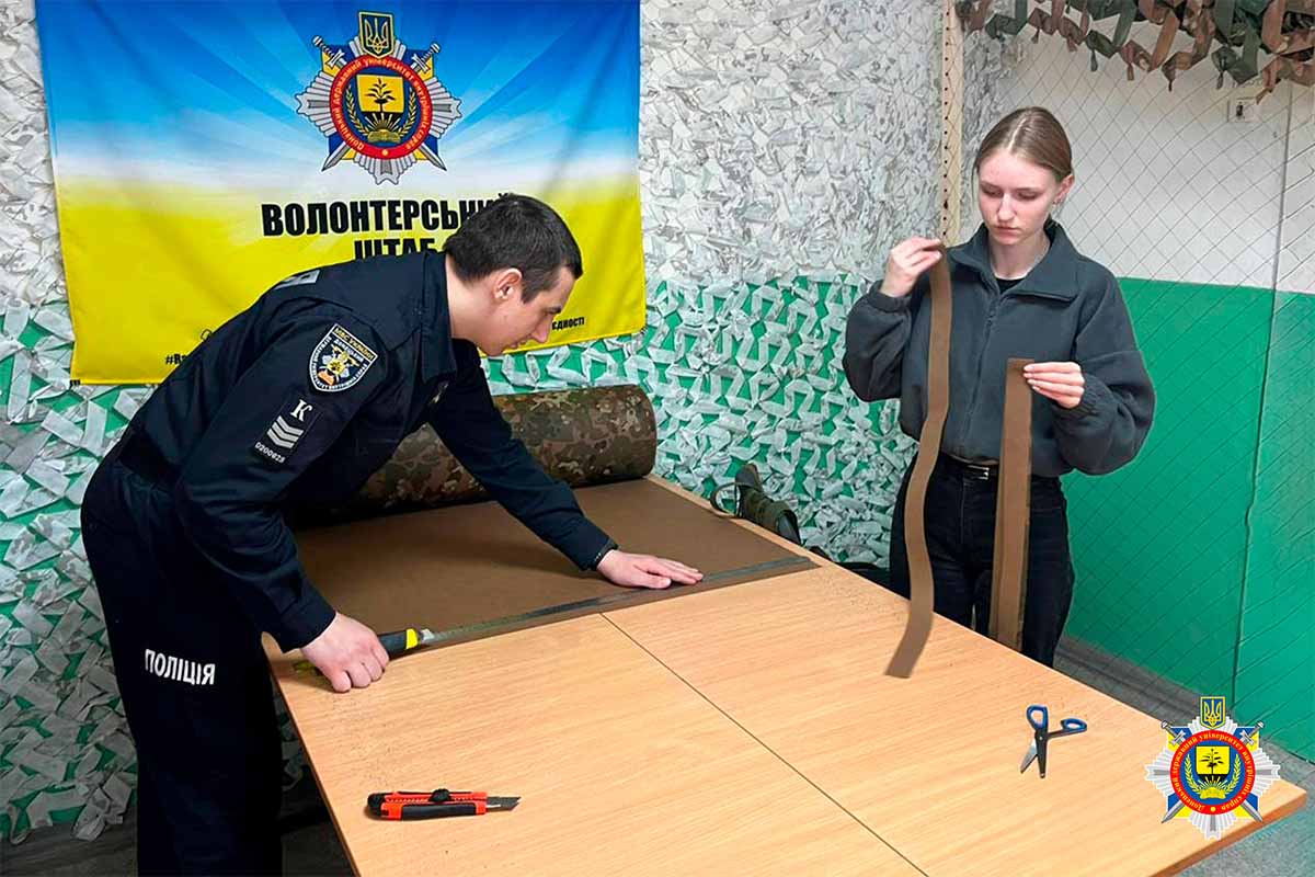 У відповідь на запит стрілецького батальйону здобувачі вищої освіти виготовляють маскувальні сітки великого розміру для приховування військової техніки, створюють індивідуальні маскувальні комплекти «Лєший», а також роблять окопні свічки, які забезпечують тепло та можливість приготування їжі на передовій.