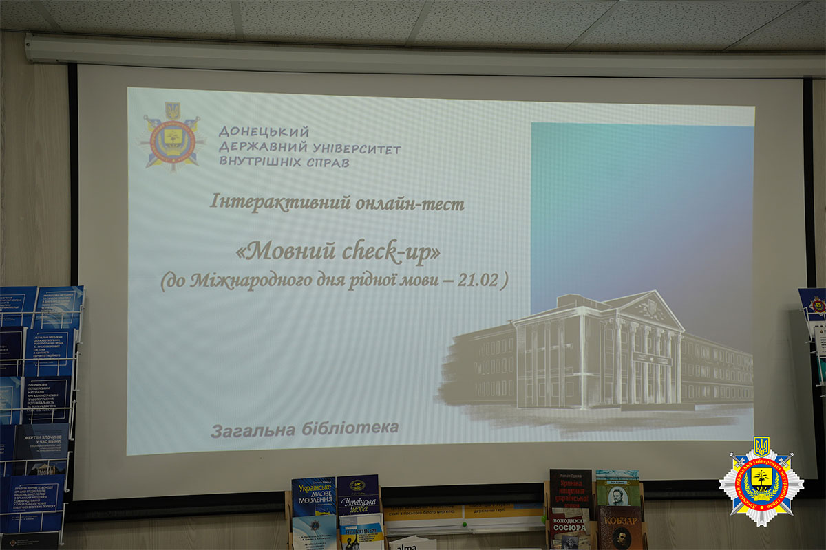 У межах реалізації магістрального проєкту «Код нації: формування української ідентичності» у загальній бібліотеці Донецького державного університету внутрішніх справ відбувся інтерактивний онлайн-тест «Мовний check-up», що входить до циклу заходів «Українська: мова як щит нації».