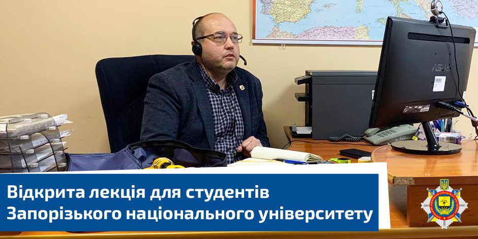 У межах підписаного меморандуму між ДонДУВС та ЗНУ, на запрошення деканеси юридичного факультету, докторки юридичних наук, професорки, Заслуженої юристки України, членкині-кореспондентки НАПрН України Тетяни Коломоєць, завідувач науково-дослідної лабораторії з проблемних питань правоохоронної діяльності Андрій Червінчук провів гостьову он-лайн лекцію для здобувачів вищої освіти юридичного факультету ЗНУ про шляхи забезпечення безпеки дорожнього руху в умовах воєнного стану, аварійність на дорогах, причини та умови виникнення ДТП, а також показники травматизму.
