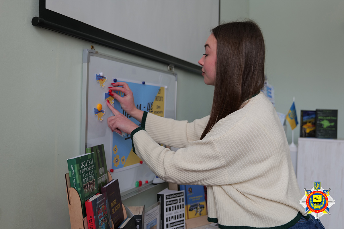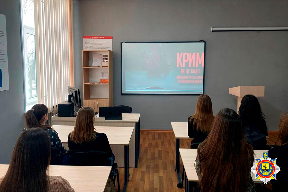 У межах відзначення пам’ятної дати курсанти та курсантки переглянули документальний фільм про хронологію захоплення Криму, спротив українських військових і місцевого населення: осмислення подій 2014 року «Крим. Як це було». Після перегляду здобувачі вищої освіти поділилися роздумами про роль громадянського суспільства у захисті державного суверенітету, питання національної безпеки та інформаційної гібридної війни.